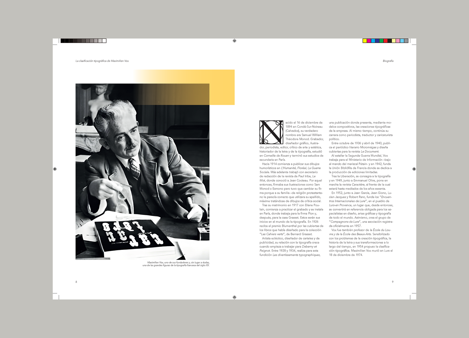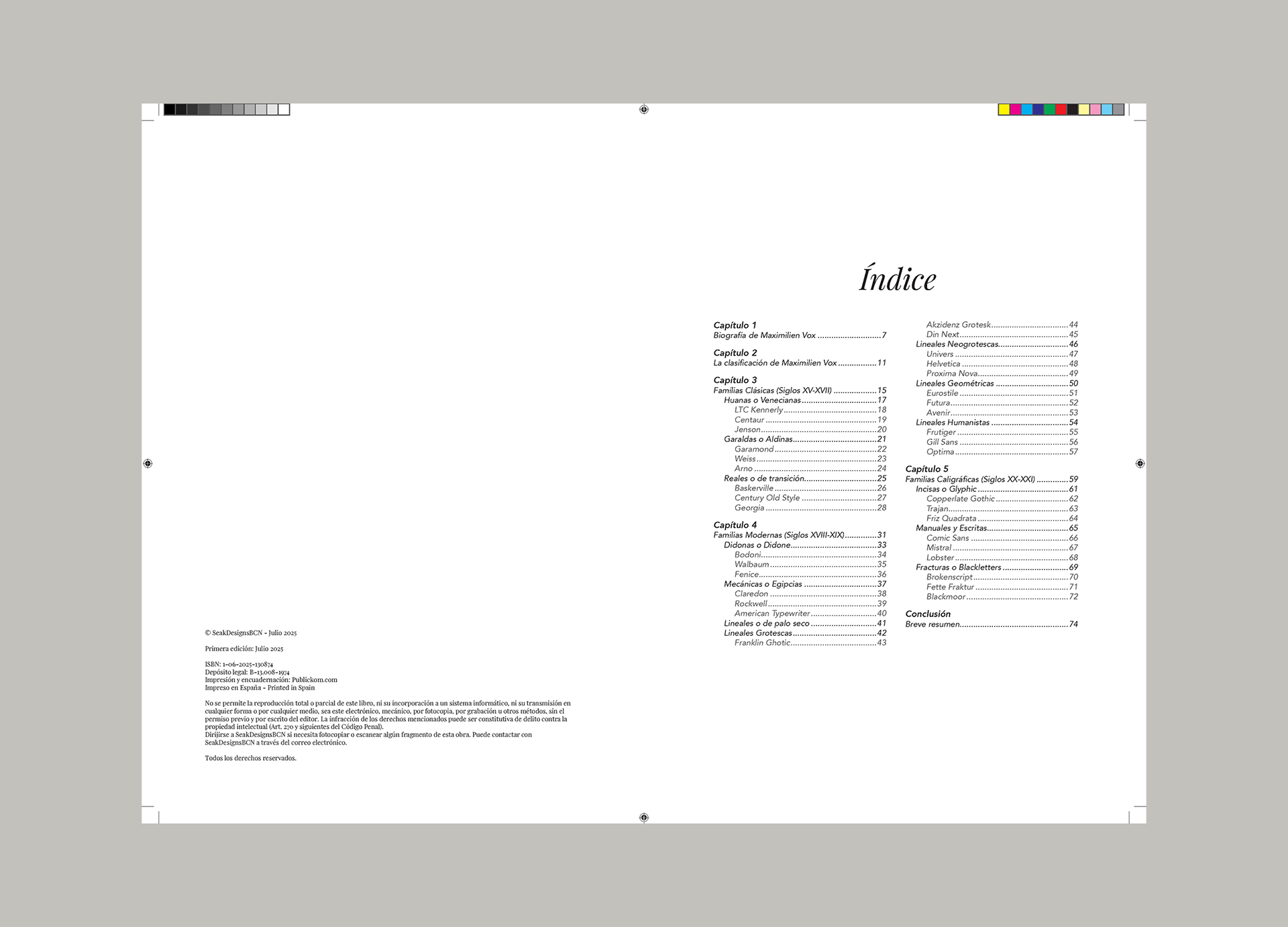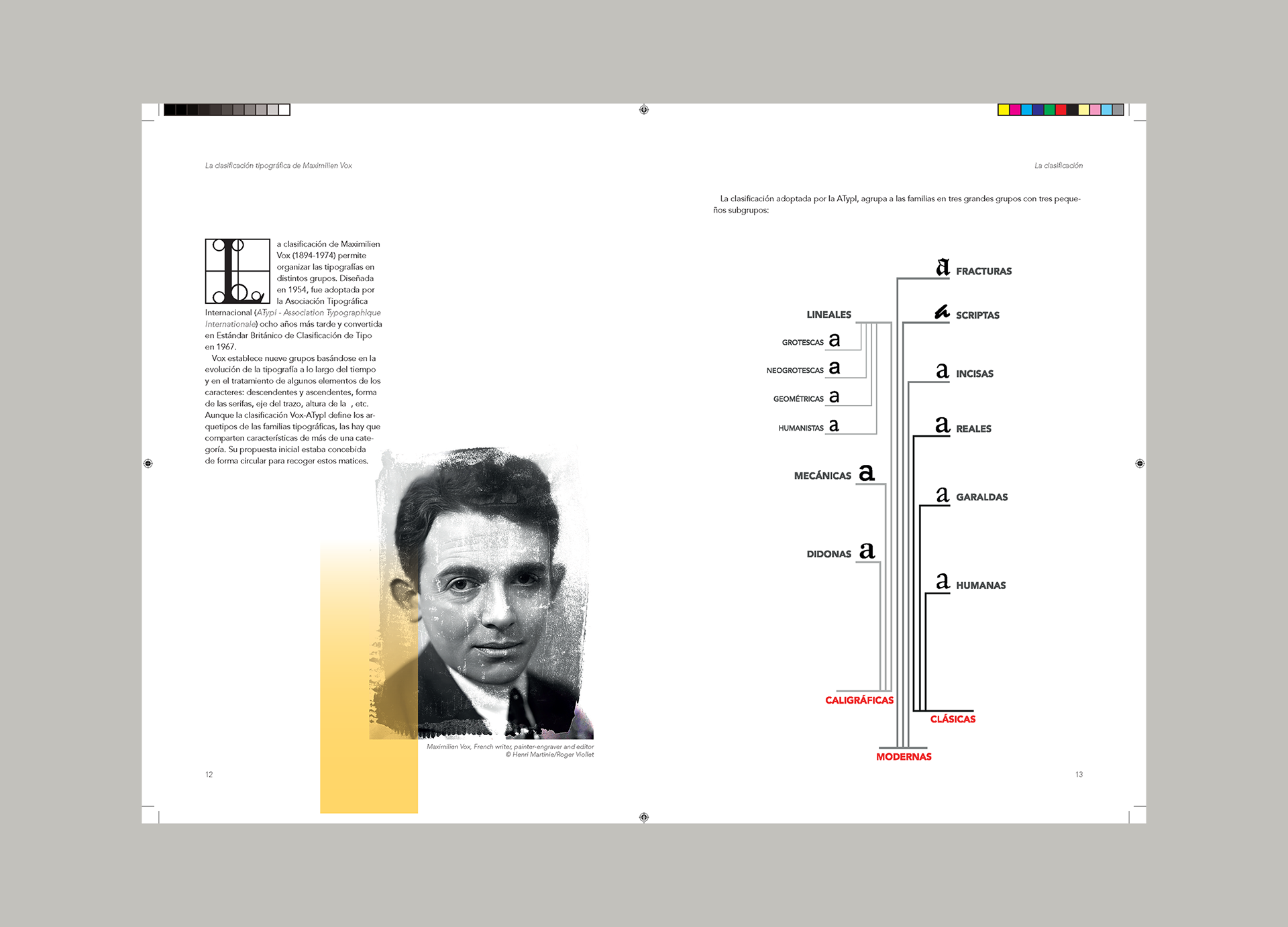 Proyecto académico centrado en la creación y maquetación de un libro informativo sobre el sistema de clasificación tipográfica propuesto por Maximilien Vox. El objetivo fue presentar de forma clara y visualmente atractiva las principales categorías tipográficas, destacando sus características y su evolución histórica.